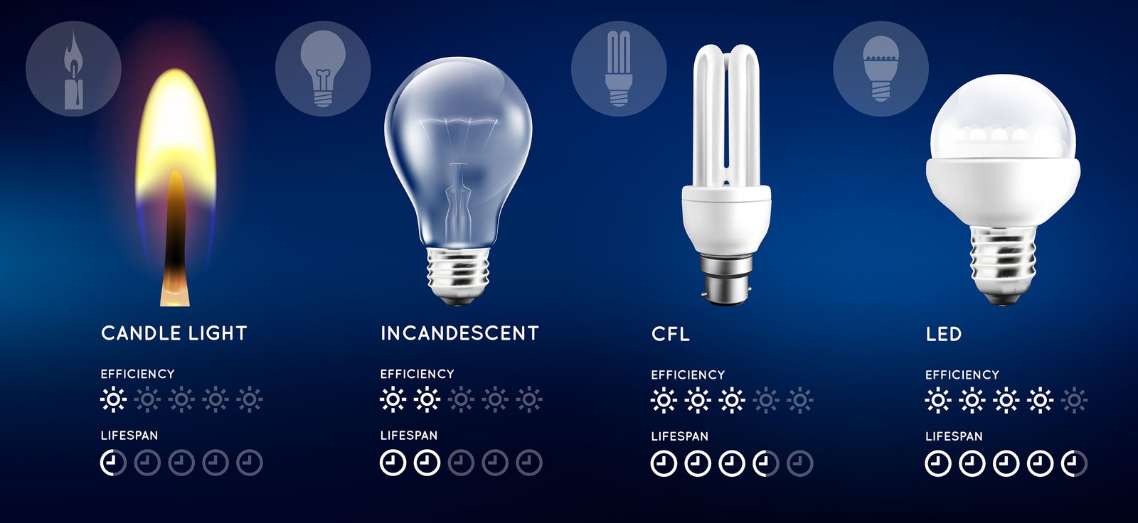 All the light bulbs we install would consume around 10W of electricity. But the luminosity will not be compromised. All the light bulbs would be as bright as bright as a 60W incandescent light bulb. Another advantage of LED is the lifespan. The LED's are made to last about 25000 Hrs. So return for investment is guaranteed.